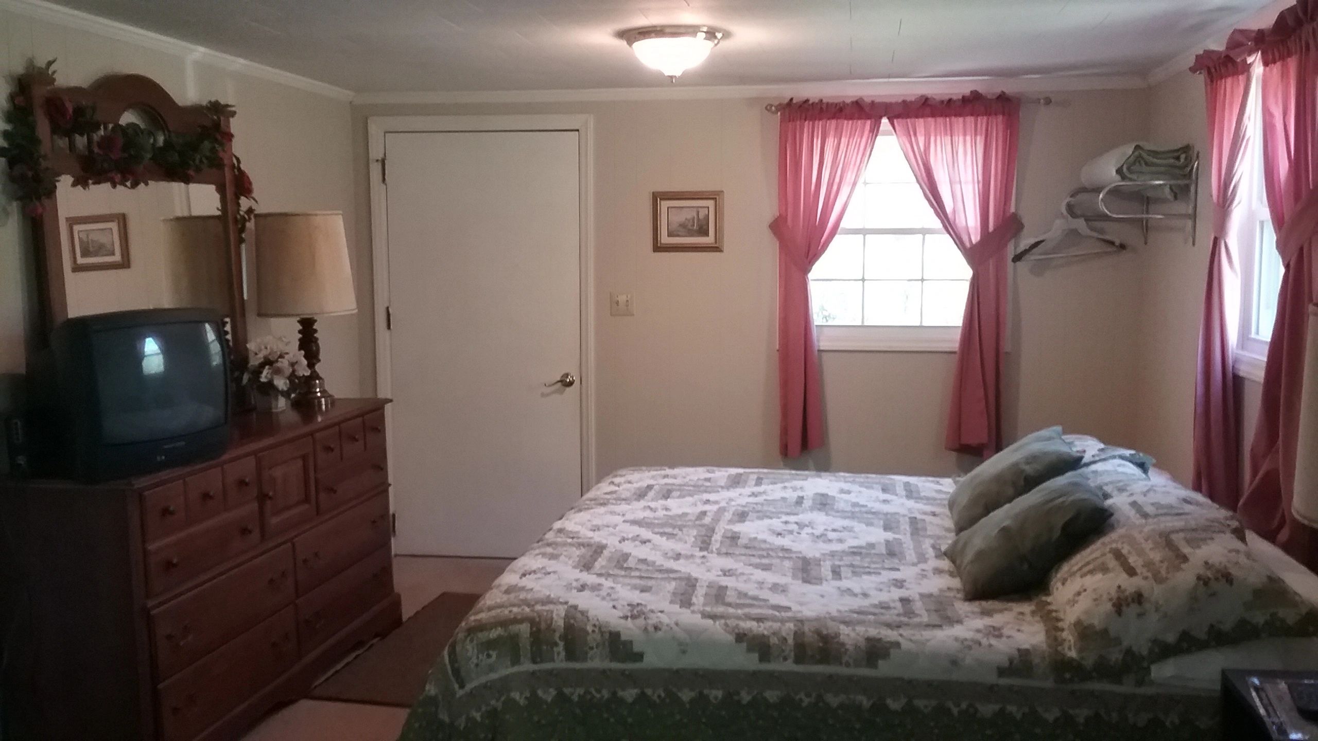 This studio apartment rental has an efficiency kitchen, king size bed, private bathroom with tub/shower combo, shared front porch, and a small private back porch. Next to creek with picnic area and overlooks horse pasture. Rates include all utilities, high-speed internet, and wi-fi!
