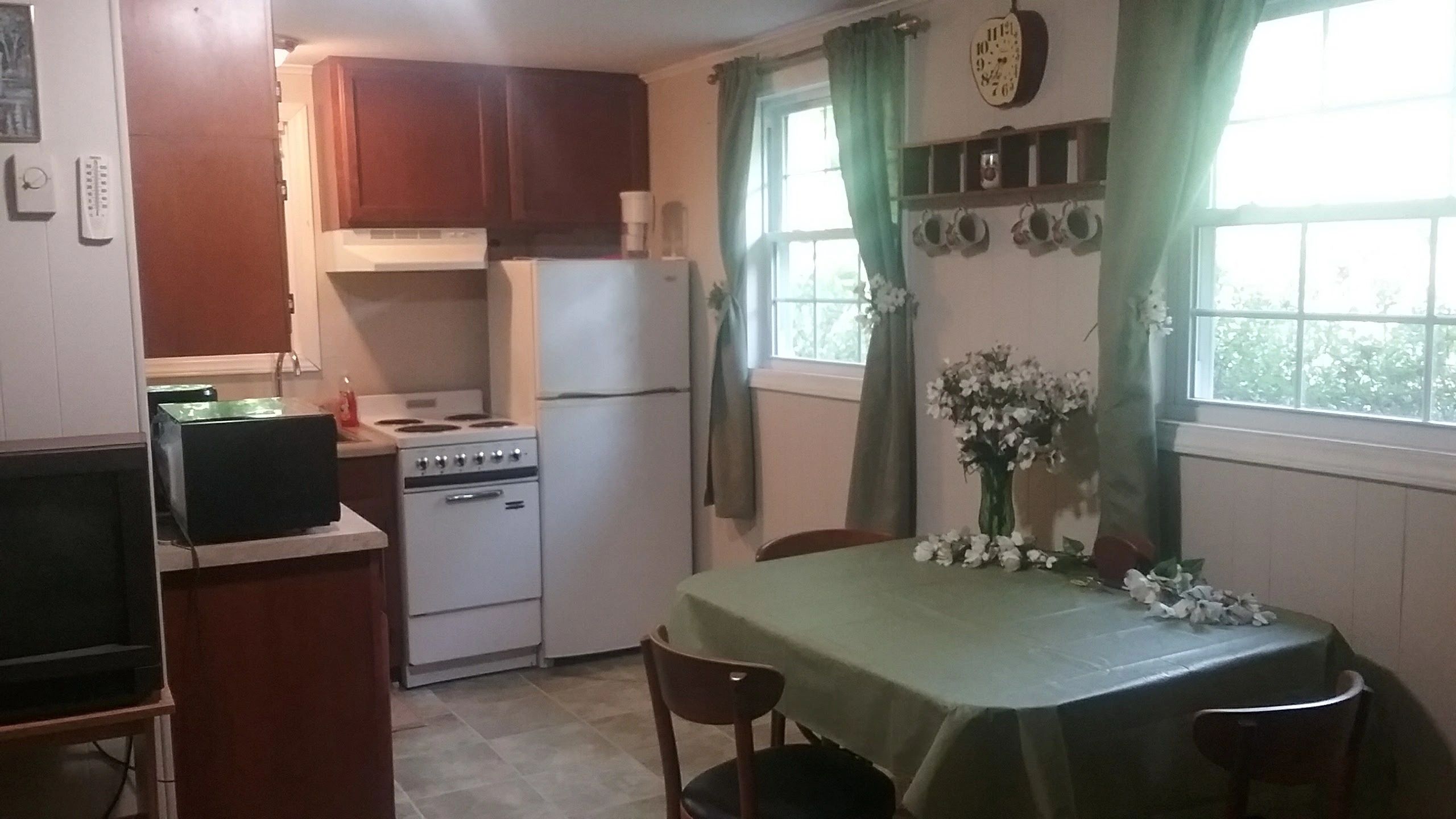 This furnished apartment rental has an efficiency kitchen, 1 full bed and a full size futon, private bath with tub/shower combo, and a shared front porch. Next to creek with picnic area and overlooks horse pasture. Rates include all utilities, high-speed internet, and wi-fi!